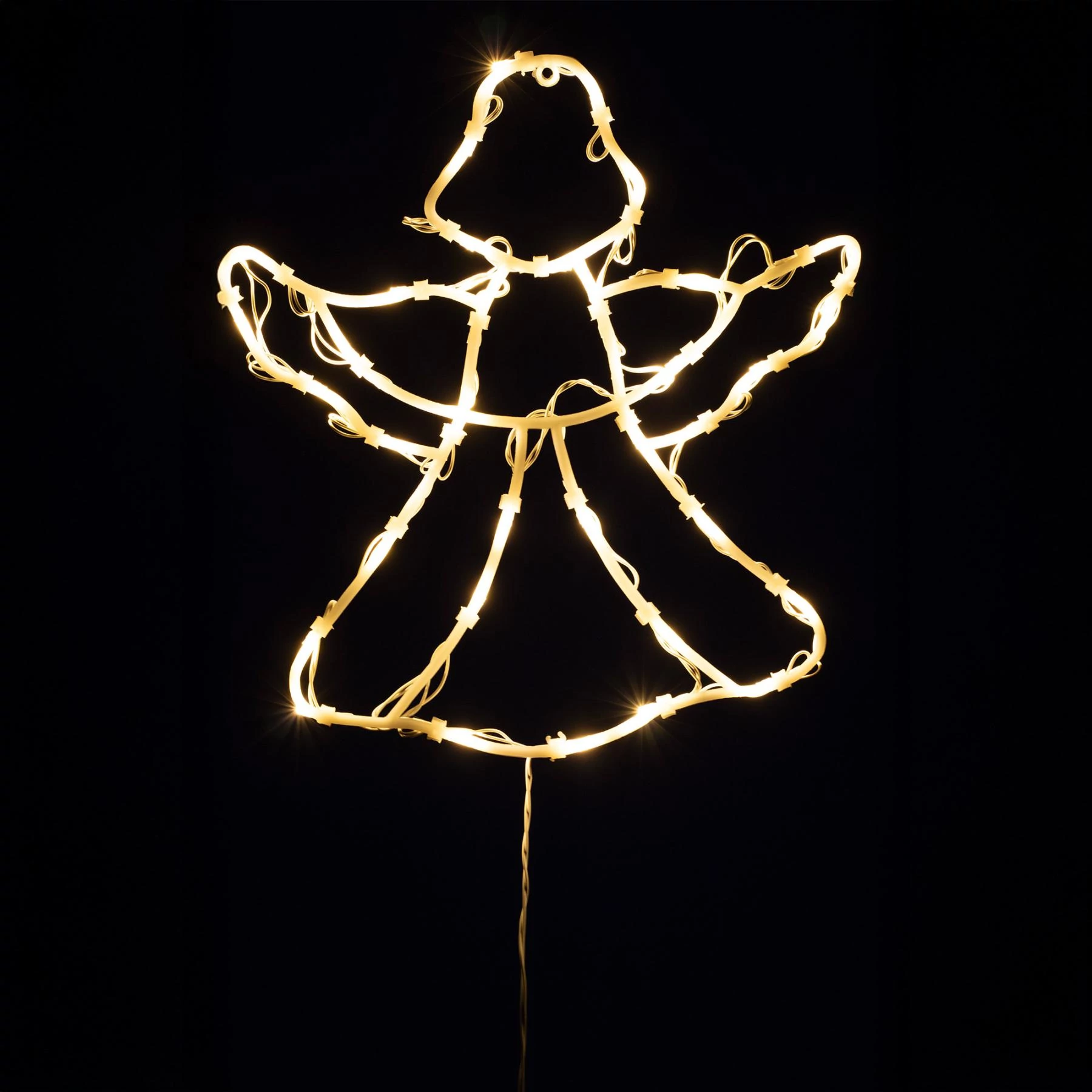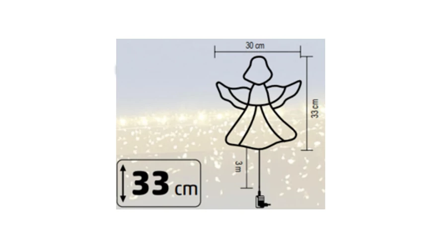 Ez a 30 x 33 cm-es angyalformájú dísz 35 darab melegfehér LED-del világít, melyek finoman szórják a fényt, így nem csak látványosak, de szemkímélőek is. A meleg fényt kibocsátó LED-ek kellemes, meghitt légkört teremtenek, amely tökéletesen illik az adventi időszakhoz.