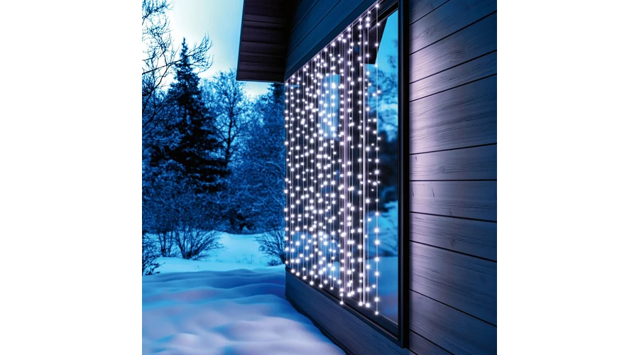 A fényfüggöny időjárásálló kialakításának köszönhetően nemcsak beltérben, hanem a kertben, teraszon vagy homlokzaton is bátran használható. Az átlátszó vezeték szinte láthatatlan marad, így a fényhatás még inkább érvényesül, és csak a ragyogó fények kerülnek a középpontba.