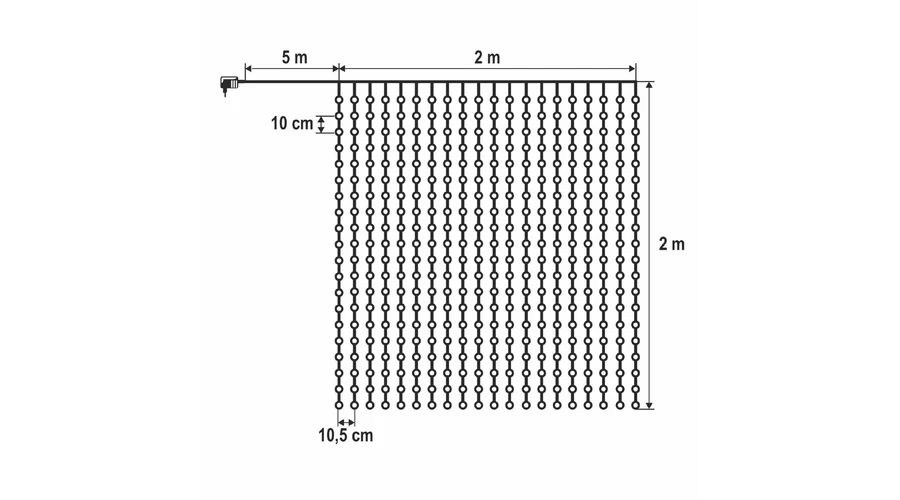 | méretek | 2m x 2 m befoglaló méret • füzértávolság 10,5 cm • 10 cm LED-távolság |