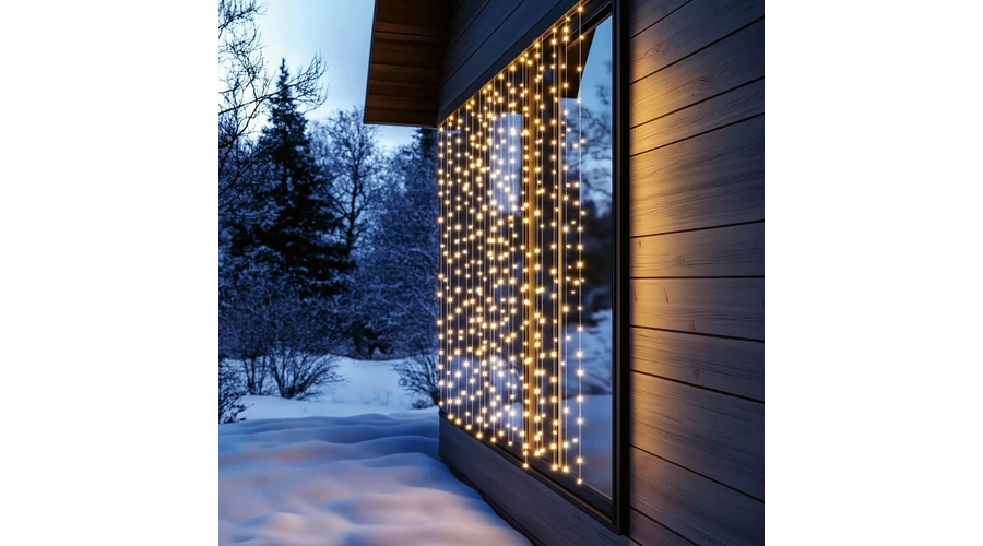 A fényfüggöny időjárásálló kialakításának köszönhetően nemcsak beltérben, hanem a kertben, teraszon vagy homlokzaton is bátran használható. Az átlátszó vezeték szinte láthatatlan marad, így a fényhatás még inkább érvényesül, és csak a ragyogó fények kerülnek a középpontba.