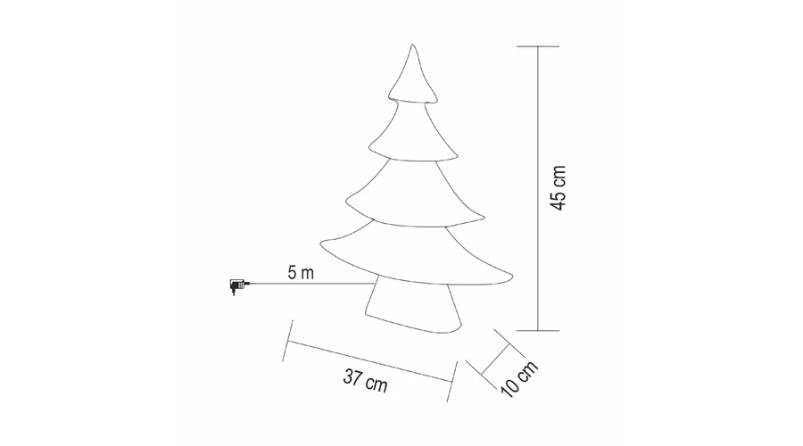 A 37 x 10 x 45 cm méretű fém fenyőfa modern dizájnt képvisel, amely minden enteriőrbe könnyedén beilleszthető. A dekorációt 160 melegfehér micro LED világítja meg, amelyek lágy, kellemes fényt árasztanak, így az ünnepek alatt és akár az év többi részében is stílusos kiegészítője lehet otthonának.
