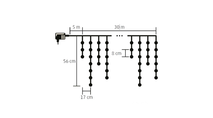 | hossz | füzér hossza:30 m • tápvezeték hossza:5 m |