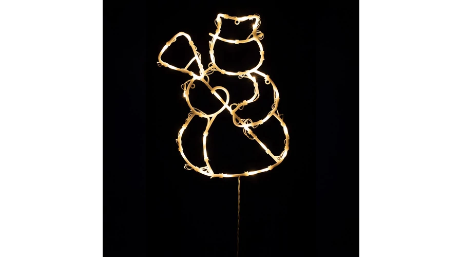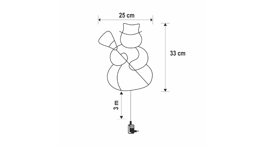 A dísz központi eleme egy mosolygós hóember forma, amelyet 35 darab melegfehér LED világít meg, kellemes és barátságos fényhangulatot teremtve. A fehér vezeték diszkréten simul a környezetébe, így a fények játsszák a főszerepet – nem a kábelek. A dísz kültéri és beltéri használatra egyaránt alkalmas, így nemcsak az otthon belső tereiben, hanem ablakra vagy teraszajtóra is tökéletesen elhelyezhető.