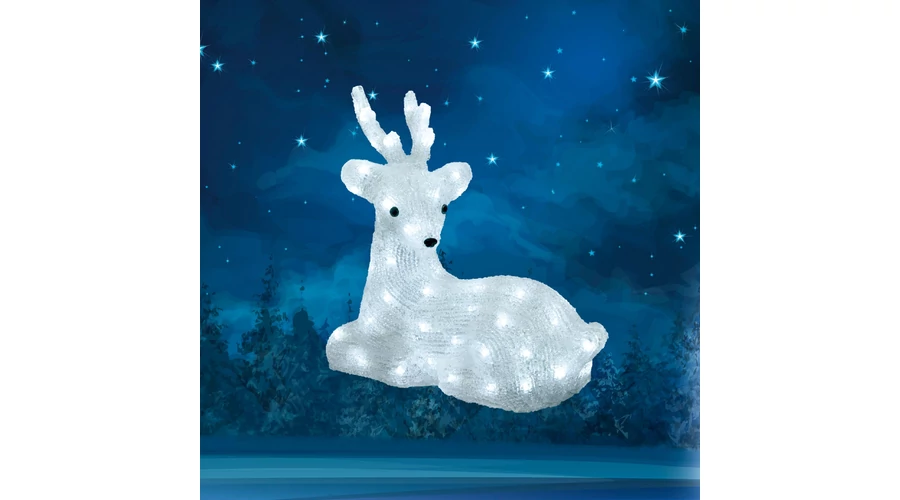 Ez a csodálatos dekorációs elem ideális választás mind beltéri, mind kültéri használatra, hogy különlegessé tegye otthonát és ünnepi dekorációját. Az akril rénszarvas 64 db hidegfehér LED-del van felszerelve. A fények lágy ragyogása kellemes és meghitt atmoszférát teremt, amely tökéletesen illik az ünnepi időszakhoz.