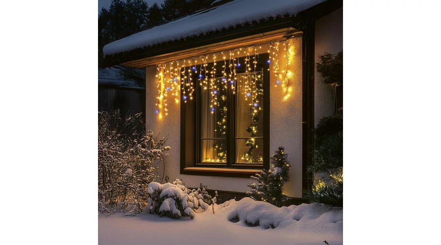 Ez a fényfüggöny nem csupán egy világító dekoráció, hanem egy igazi hangulatteremtő elem, amely tökéletesen alkalmazkodik beltéri és kültéri környezethez is. A 600 db melegfehér DOT LED lágy, kellemes fényt biztosít, míg minden második füzérbe rejtett 1 hidegfehér LED finom sziporkázása mozgalmassá teszi az összhatást. Ez az elegáns fényjáték segít kiemelni otthona vagy kertje karakterét, legyen szó ünnepi készülődésről vagy egy nyári rendezvényről.