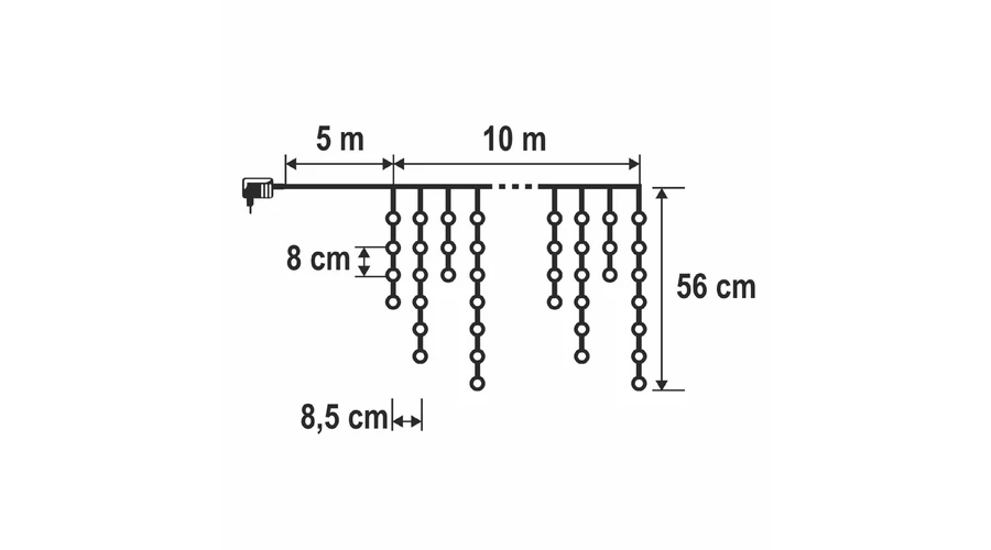 | méretek | 10 m x 56 cm • füzérek közötti távolság:8,5 cm • LED-ek közötti távolság:8 cm |