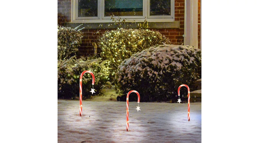 Minden egyes cukorbot öt melegfehér LED-del világít, így kellemes, ünnepi fényt varázsol otthonába vagy kertjébe. A cukorbotok műanyagból készültek, így tartósak és könnyűek, valamint IP44 védelemmel rendelkeznek, ami biztosítja a kültéri használatot is.