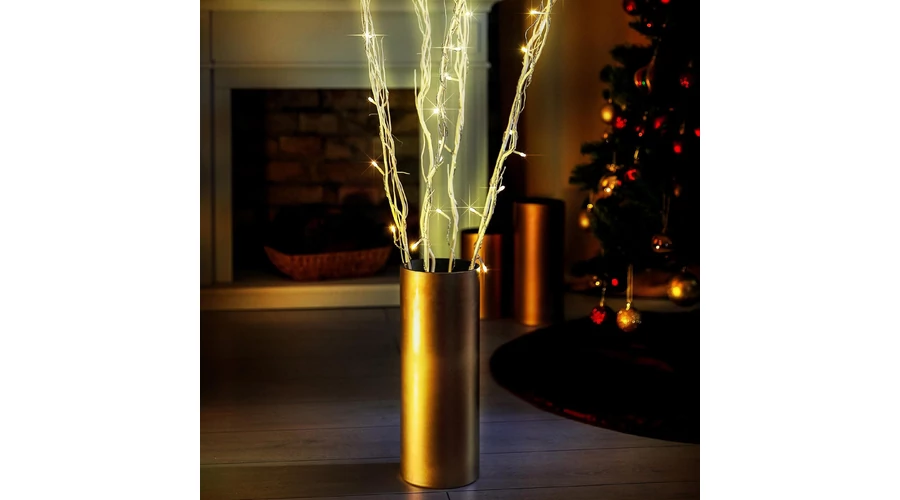 120 cm hosszú, elegáns fehér ágakkal és 40 melegfehér LED-el díszítve, ez a kiegészítő tökéletes választás belső terek megvilágításához.