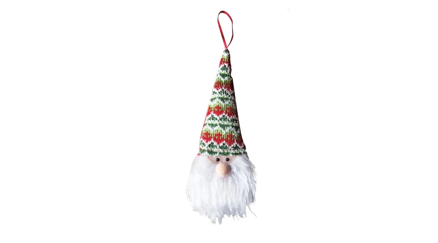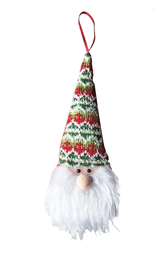 Akasztóval ellátott karácsonyi gnóm figura, 25 cm magas.
