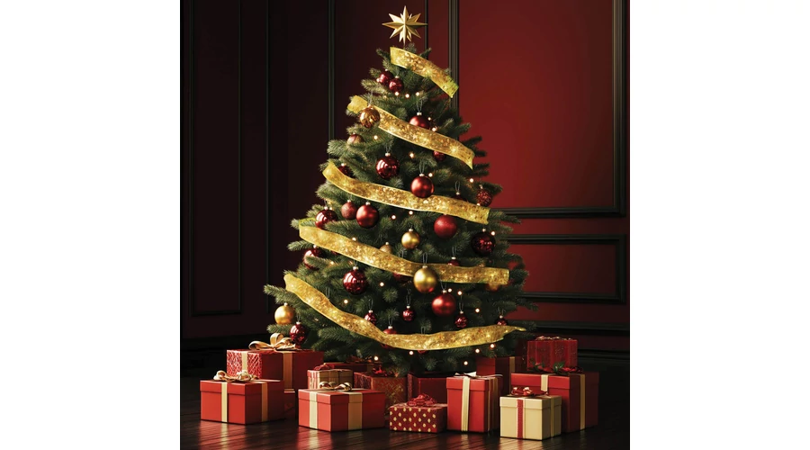 A fényfüzér 10 méter hosszúságú, 5 cm széles arany szalagot kínál, amely egyaránt alkalmas polcokra, ablakkeretekre, kandallópárkányokra vagy akár asztali dekorációként is. A LED-ek 10 cm-enkénti elhelyezése biztosítja az egyenletes fényeloszlást, így minden részlet megkapja a megfelelő kiemelést.