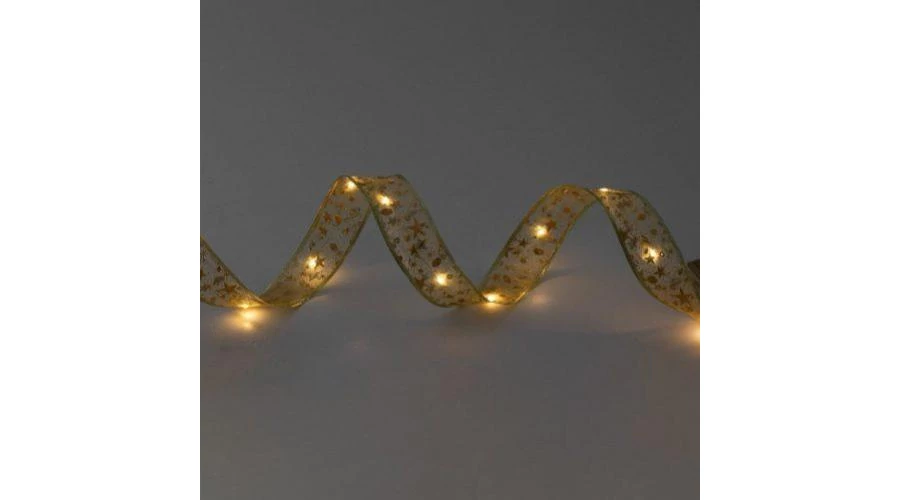 A melegfehér fény és a szalag arany tónusa elegáns megjelenést kölcsönöz, amely kiválóan illik modern és klasszikus enteriőrbe egyaránt. A szalag kialakítása nem csupán dekoratív, de könnyen formázható is, így kreatívan használható az ünnepi díszítés során.